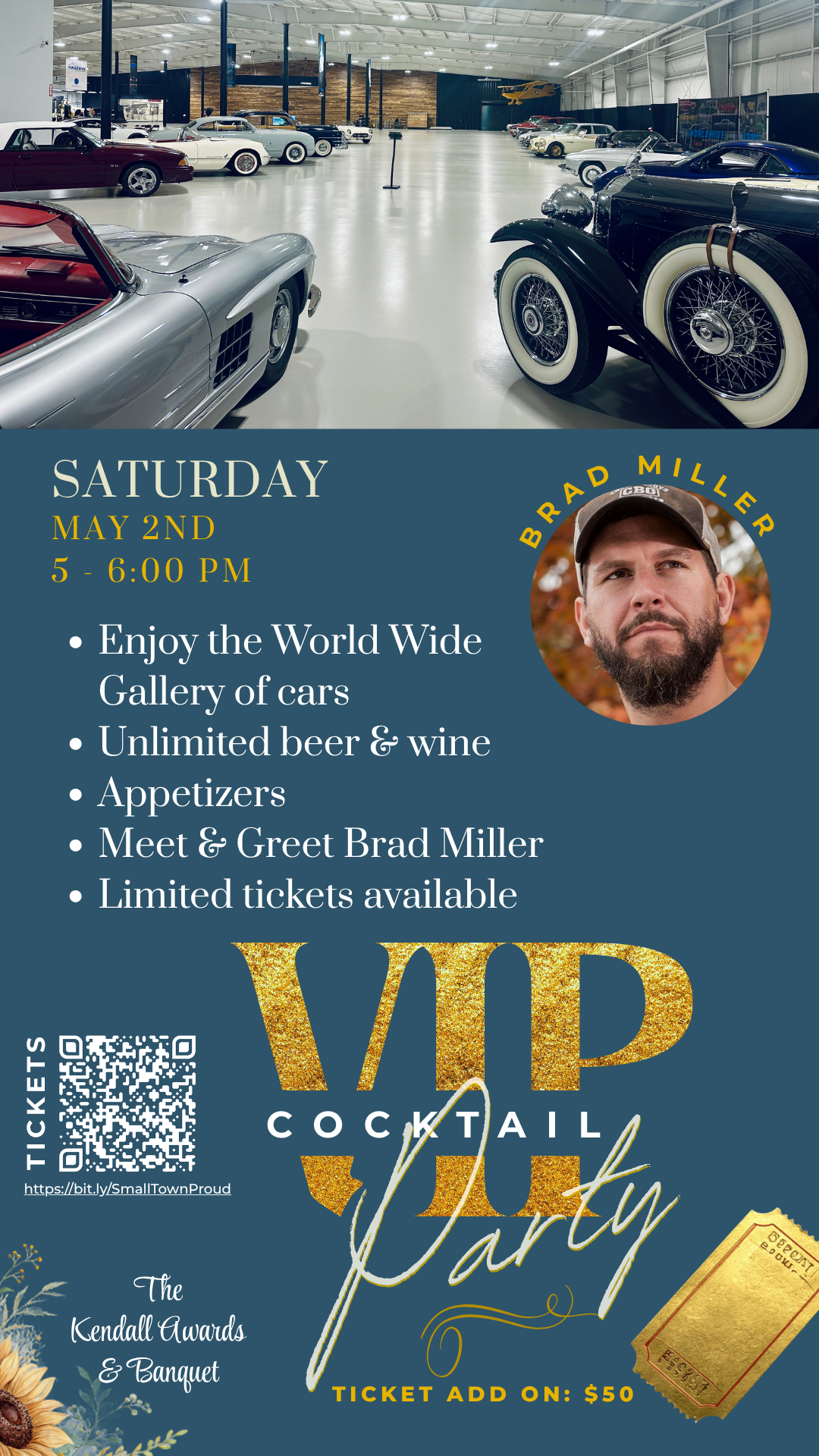 From the moment you arrive, you’ll be welcomed into the stunning World Wide Gallery, surrounded by an extraordinary collection of classic and vintage automobiles. The atmosphere is relaxed yet sophisticated—perfect for mingling, making connections, and soaking in a one-of-a-kind setting before the main event begins.